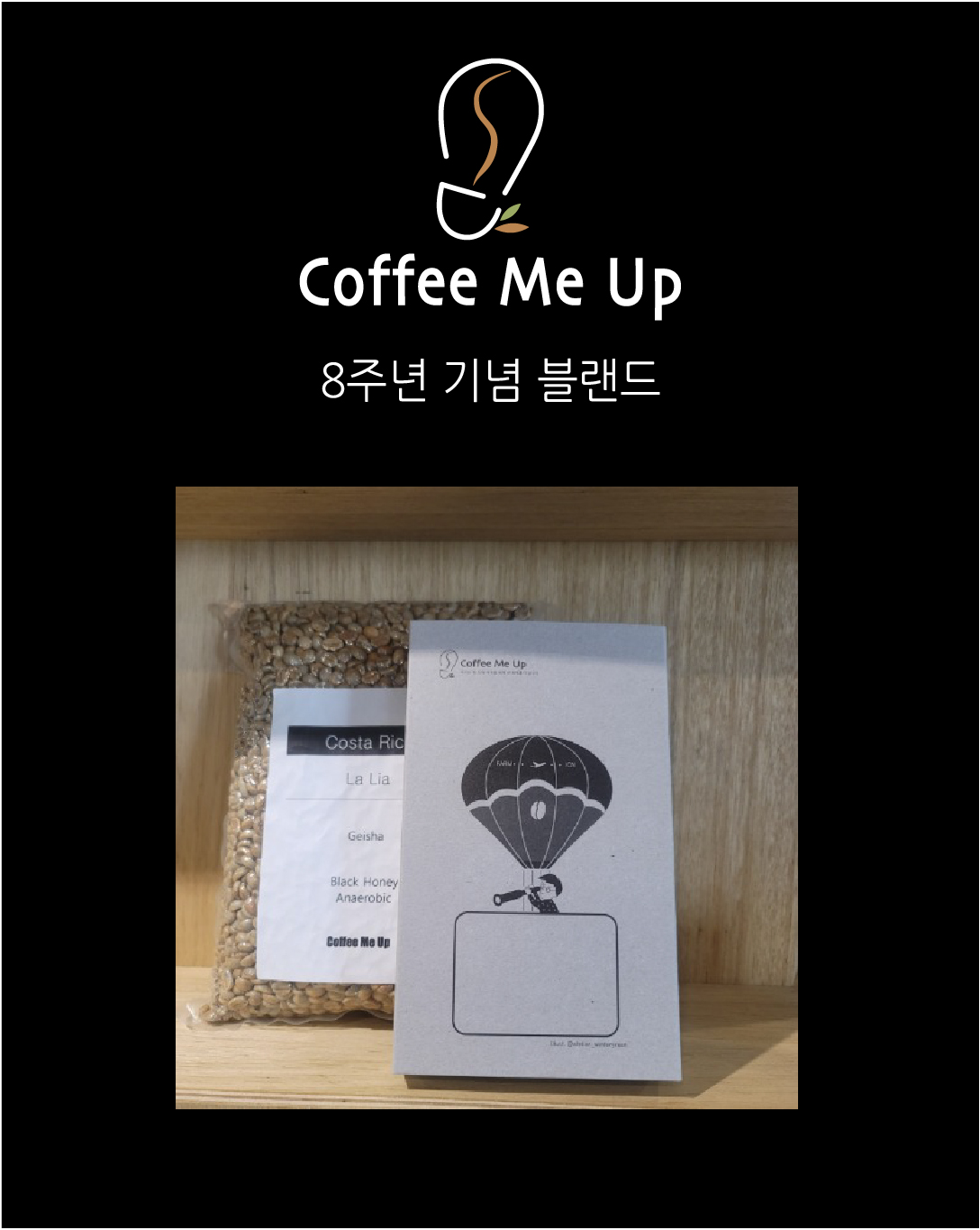 커피미업의 8주년을 맞이하여 제작된 이 게이샤 블랜드는 한때 COE 최고가를 기록하며 낙찰되었던 온두라스 산타루시아 농장의 게이샤가 30%로 가장 많이 들어가 있고, 역시 COE 단골 수상 농장인 코스타리카의 신 리미테스 농장의 SL28을 20% 넣었습니다.