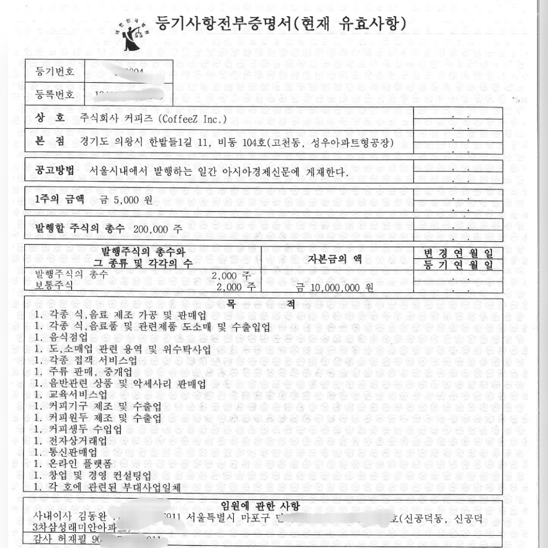 어쨌거나 드리고 싶었던 말씀은 이제 개인사업자 커피미업은 폐업을 하고 법인을 통해 새롭게 태어납니다.