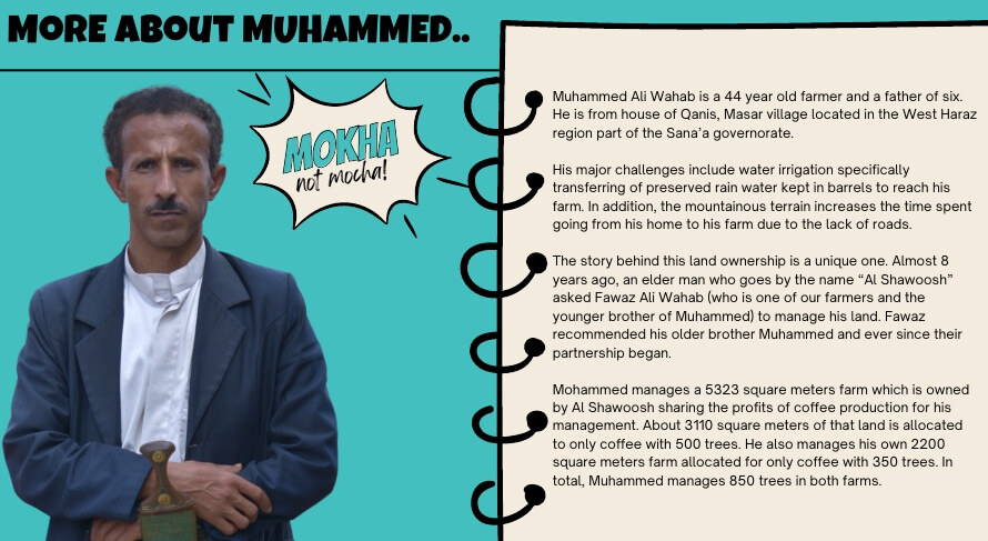 올해 소개할 마지막 2개의 예맨 스페셜티 커피 중 하나인 Muhammed Ali Wahab (무하마드 알리 와하브) 농부의 커피입니다.