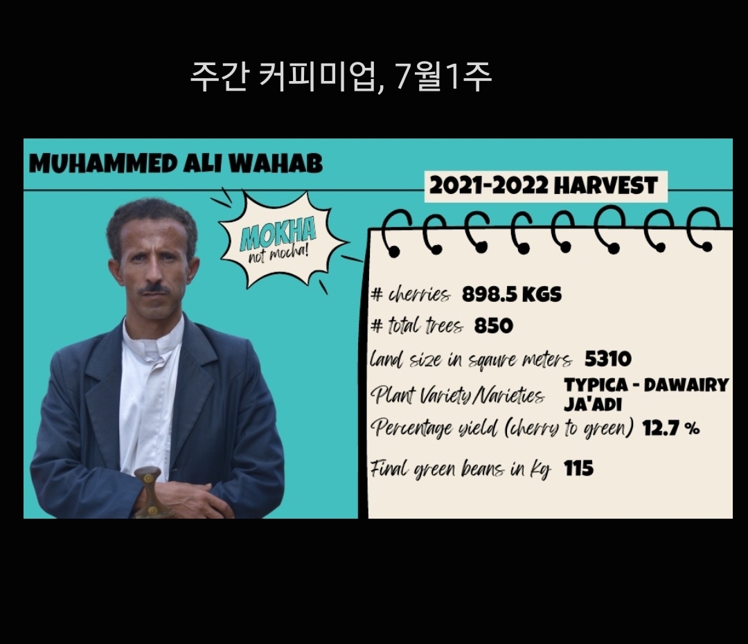 오늘 소개해드릴 커피는 무하마드 알리의 커피인데요. 그는 만44세의 농부로 (저랑 동갑이네요 ㅋ 반가워!) 전직 교사였으나 동생에 말을 듣고 농장으로 돌아와 6명의 자녀와 함께 500그루의 커피나무를 키우고 있습니다.