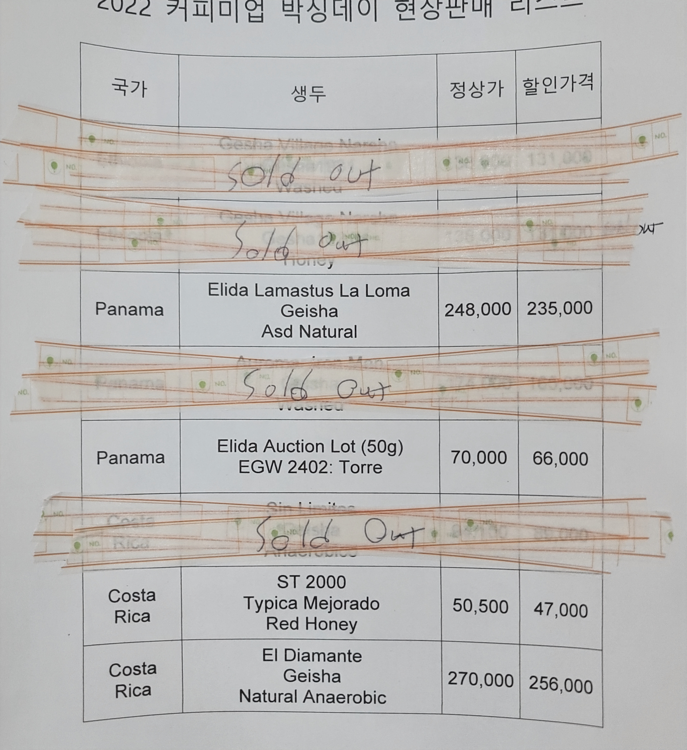엘 디아만테 게이샤와 라마스투스 옥션랏이 눈에 띄네요!