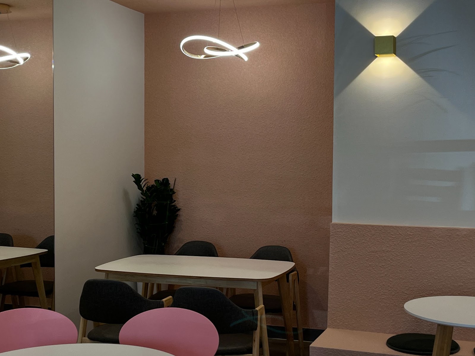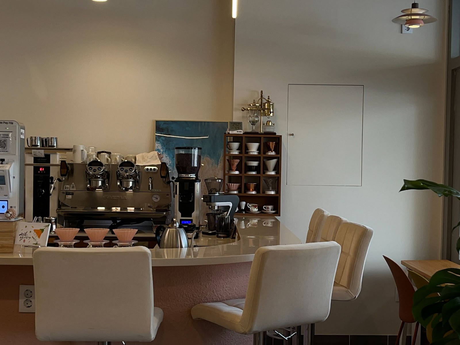 사람들이 카페를 방문하는 이유는 다양합니다. 커피에 관심이 있는 분들을 위한 바테이블과 함께 카페 내부에 놓인 테이블 좌석들은 삼삼오오 편안하게 모여 앉아있을 수 있는 모습이었습니다. 디자인적으로 눈길이 가는 조명 아래에서 깔끔한 테이블과 좌석이 잘 구비되어 있어서 누군가와 함께 마주 앉아 자리에서 도란도란 이야기를 나누는 분위기가 자연스럽게 연결되는 내부였습니다.