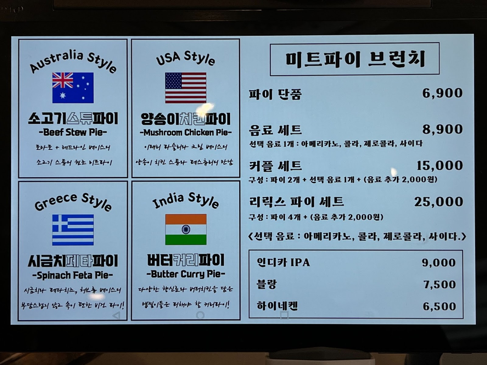 마침 방문했을 때, 새롭게 출시된 리릭스 커피 컴퍼니의 메뉴가 있었는데요. 한끼 식사로도 훌륭한 파이들이 다양한 종류로 준비되어 있었습니다. 묵직한 질감이 인상적인 소고기 스튜 파이, 재료들의 조화가 인상적이었던 양송이 치킨 파이, 비건족들을 위한 시금치 페타 파이, 커리의 풍미가 진한 버터 커리 파이까지. 다양한 취향에 맞춰 즐길 수 있는 네 종류의 파이는 각자 캐릭터가 뚜렷한 향미를 품고 있었습니다. 파이들은 모두 커피와도 잘 어울리는 맛들이었는데, 음료와 파이가 세트 메뉴로도 판매 중이어서 보다 합리적으로 파이와 음료를 함께 즐길 수 있도록 되어있습니다. 커피의 향미뿐만 아니라 파이의 향미까지 잘 갖춰진 리릭스 커피 컴퍼니에서 파이 세트 한 번 드셔보시길 추천드립니다.