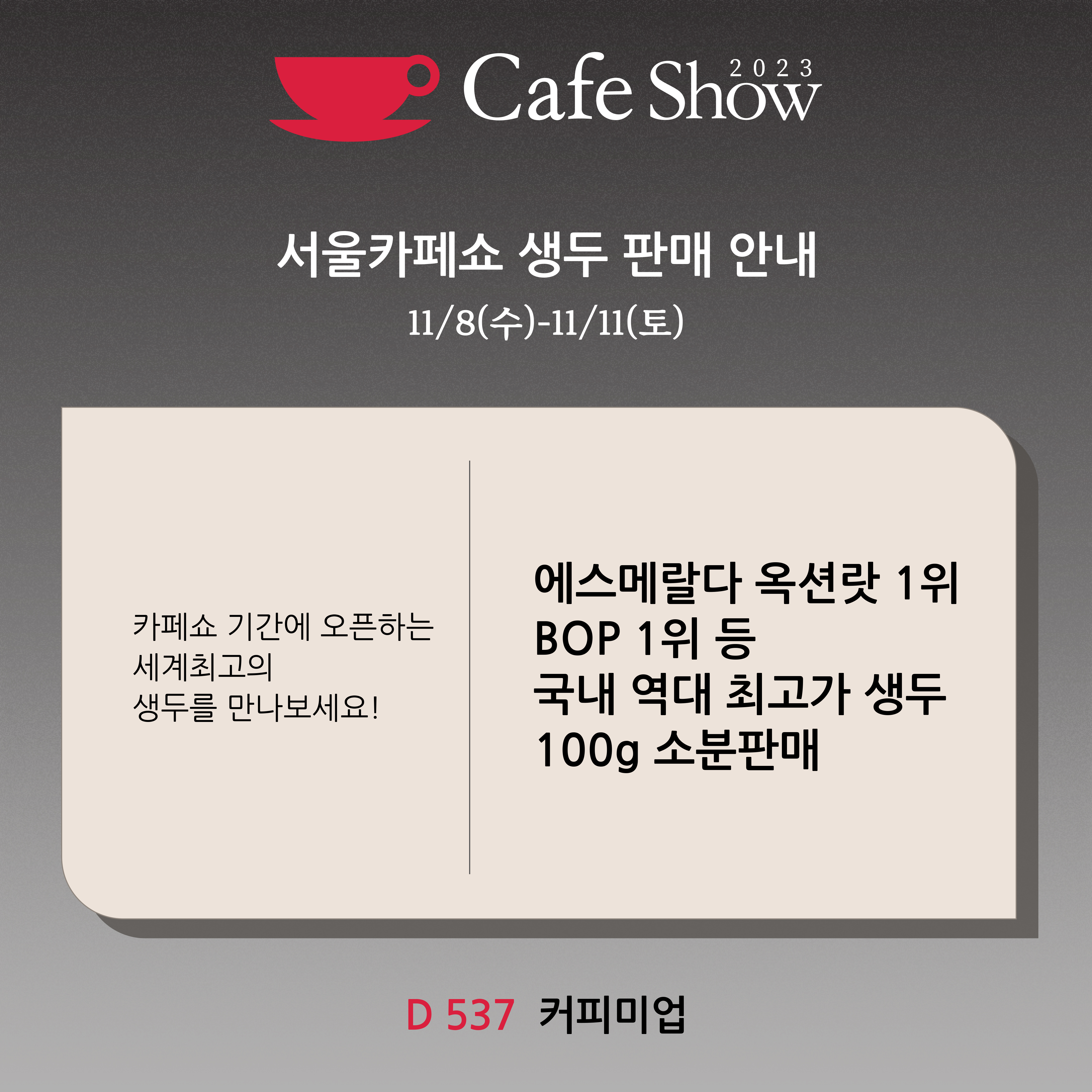 ■ 카페쇼에서 할인해 드리는 특별한 생두