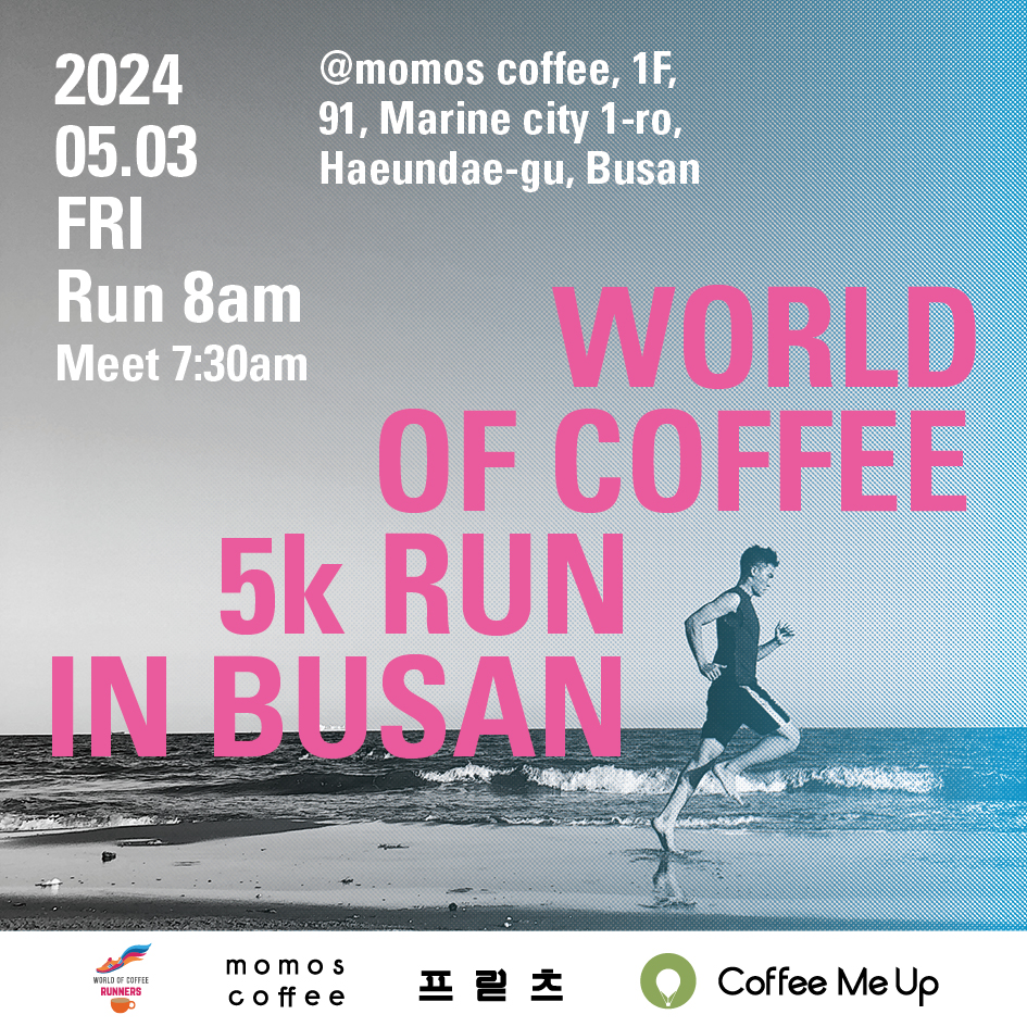 특히 모모스커피의 새로운 매장인 해운대 마린시티점 개장과 함께 전세계 커피인들과 아름다운 부산의 바다를 보며 달릴 수 있는 뜻깊은 행사입니다.
