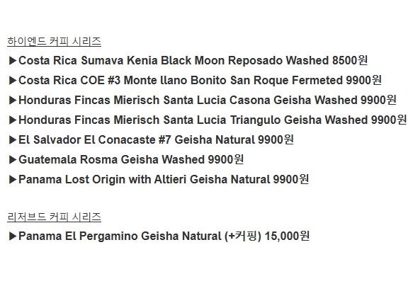 끝으로 하이엔드 시리즈에 있는 마지막 커피와 리저브드 커피는 설명이 필요없는 파나마의 좋은 커피!