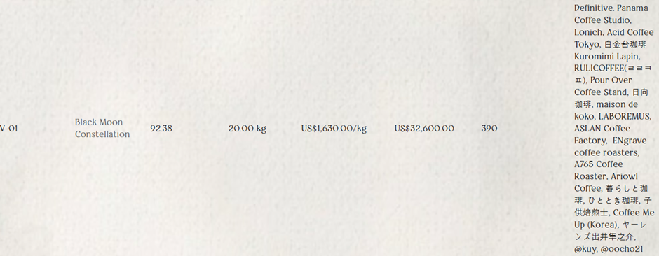 2024년 10월 입고된 파나마 블랙문 농장의 치로소 옥션랏 입니다.