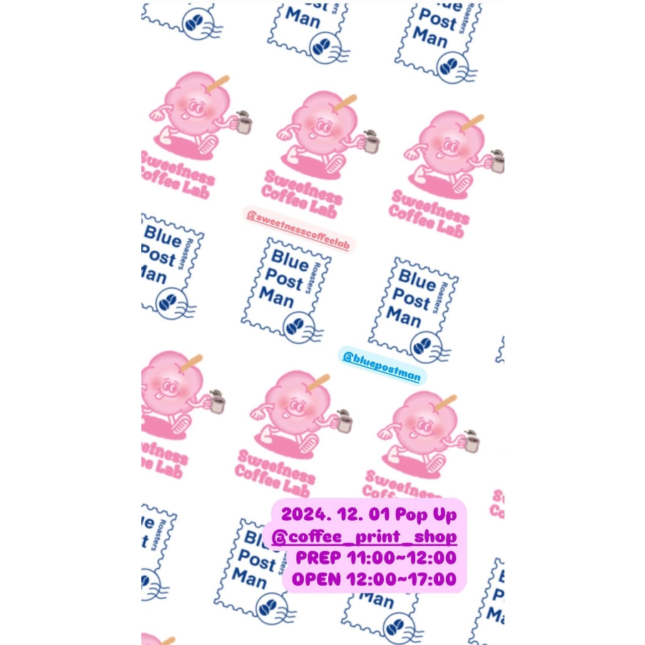 파란옷을 입고 오시는 고객님께는 블루포스트맨에서, 분홍색 옷을 입고 오시는 고객님께서는 스윗니스커피랩의 원두를 선물로 드립니다.