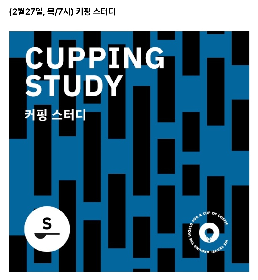 2월27일 목요일 7시에 커피미업 센서리랩에서 진행하며 누구나 오실 수 있어요.