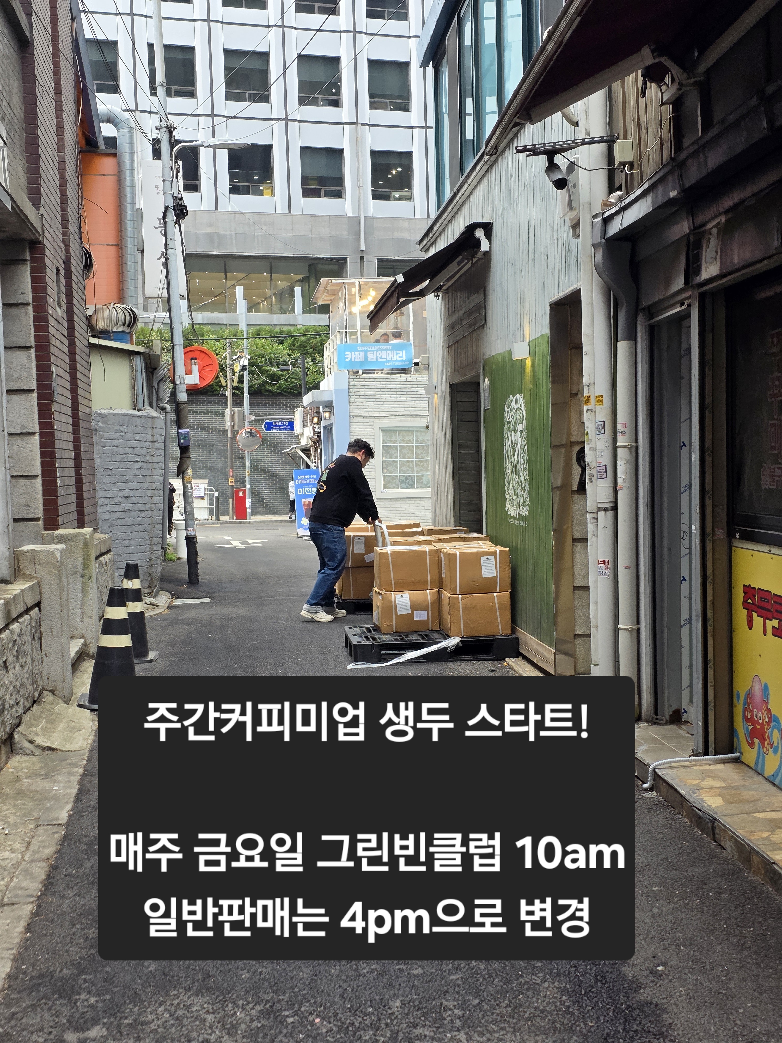 올해부터 주간커피미업은 그린빈클럽응 예전처럼 10시에 오픈되지만 일반판매는 러시타임을 지나 늦춰달라는 로스터분들이 많아서 4시로 변경됩니다.