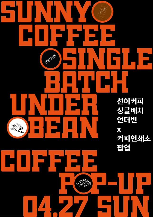 바로 부천 스페셜티 3대장인 선이커피, 언더빈 그리고 싱글배치로스터스의 공동팝업인데요.