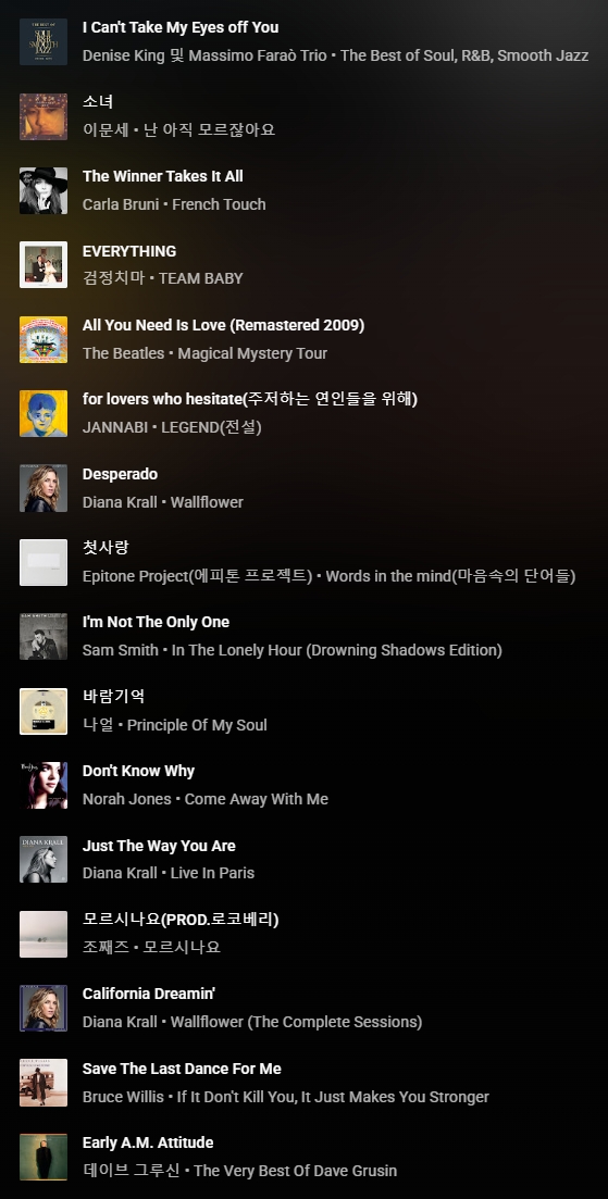 이번주 뮤직 리스트 입니다.