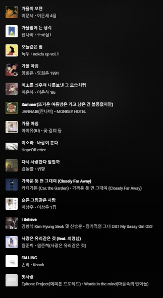여름은 보내고 가을을 맞이합시다. 추억의 가을노래 위주로 잔잔하게 준비합니다.