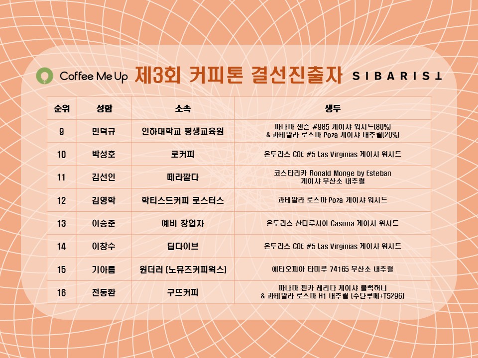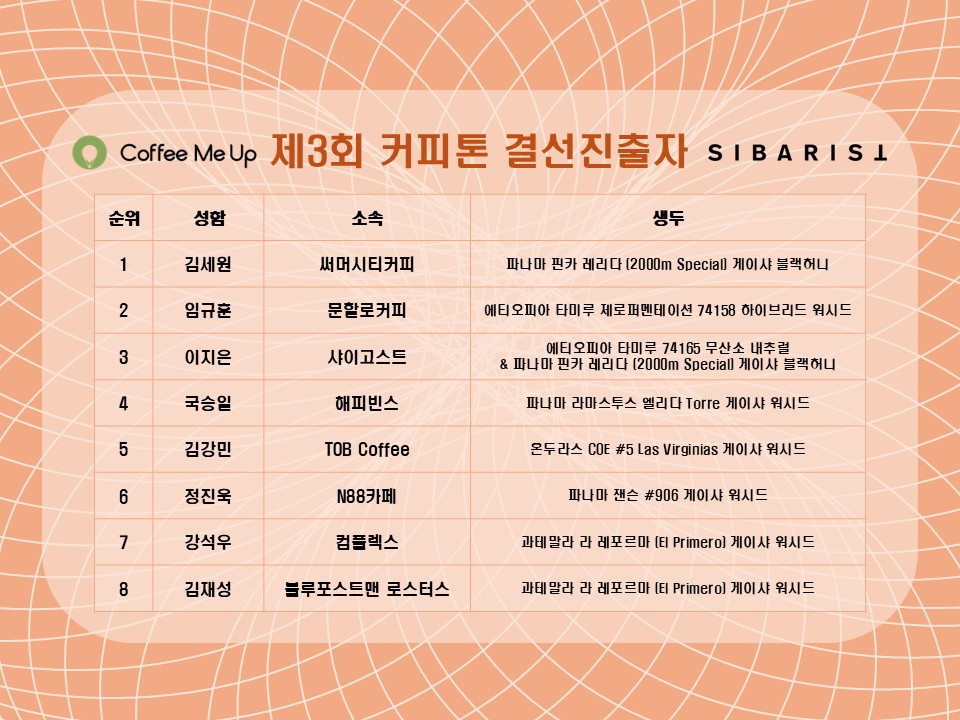 모든 분들 축하드리고 커피톤에 완주해주신 모든 분들께는 커피미업 생두 1만원 상품권을 보내드릴예정입니다. (회원가입 필요/추후안내)