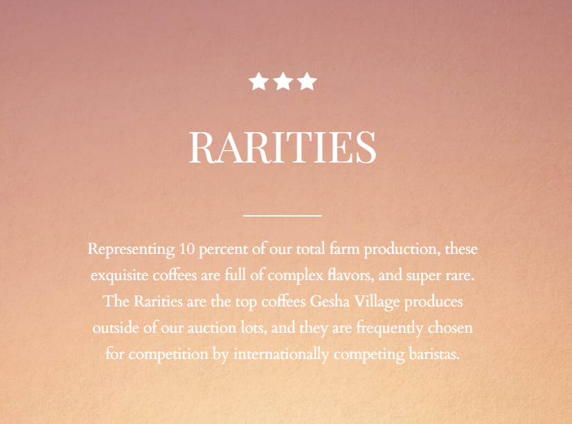 1) 최고의 품질인 게샤빌리지 중에서도 Top 10% 이하만이 선택되어지는 Rarities label.