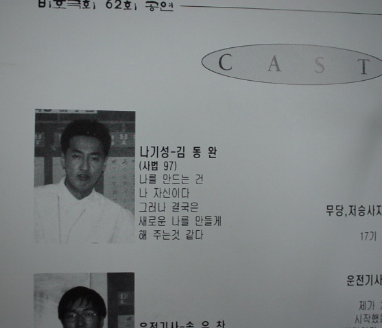 당시 대구에서 대학을 다녔던 저는 연극반 활동을 했었는데 동기들을 제치고 두번의 공식무대에서 모두 주인공 역할을 맡았었습니다.