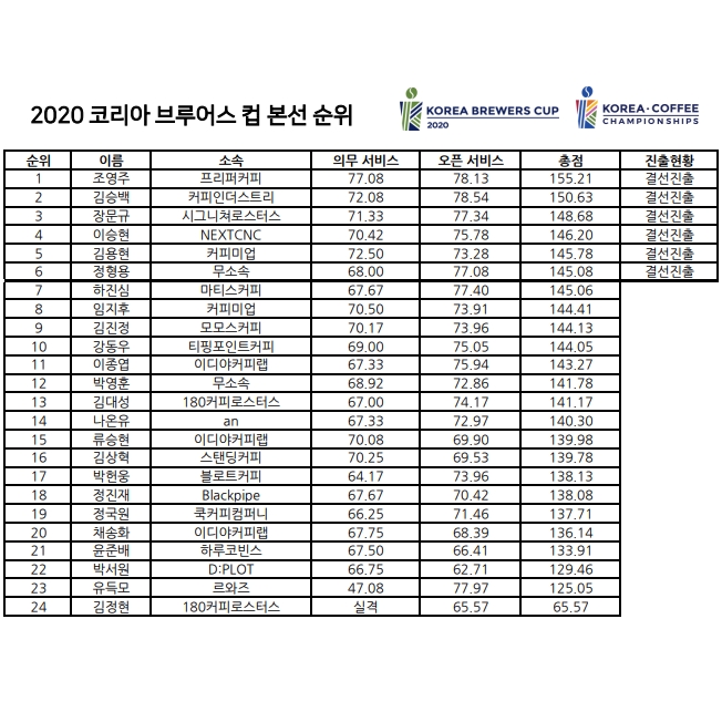 어쨌거나 몇몇 선수들은 오픈에서 높은 점수를 받고 의무때문에 탈락한 경우도 보이는데, 그렇다면 의무서비스는 운도 따라주긴 해야겠지만 해당 대회에 사용될 콩에 맞는 전술을 만들어 보는것도 좋은 방법이 될 수도 있겠습니다.