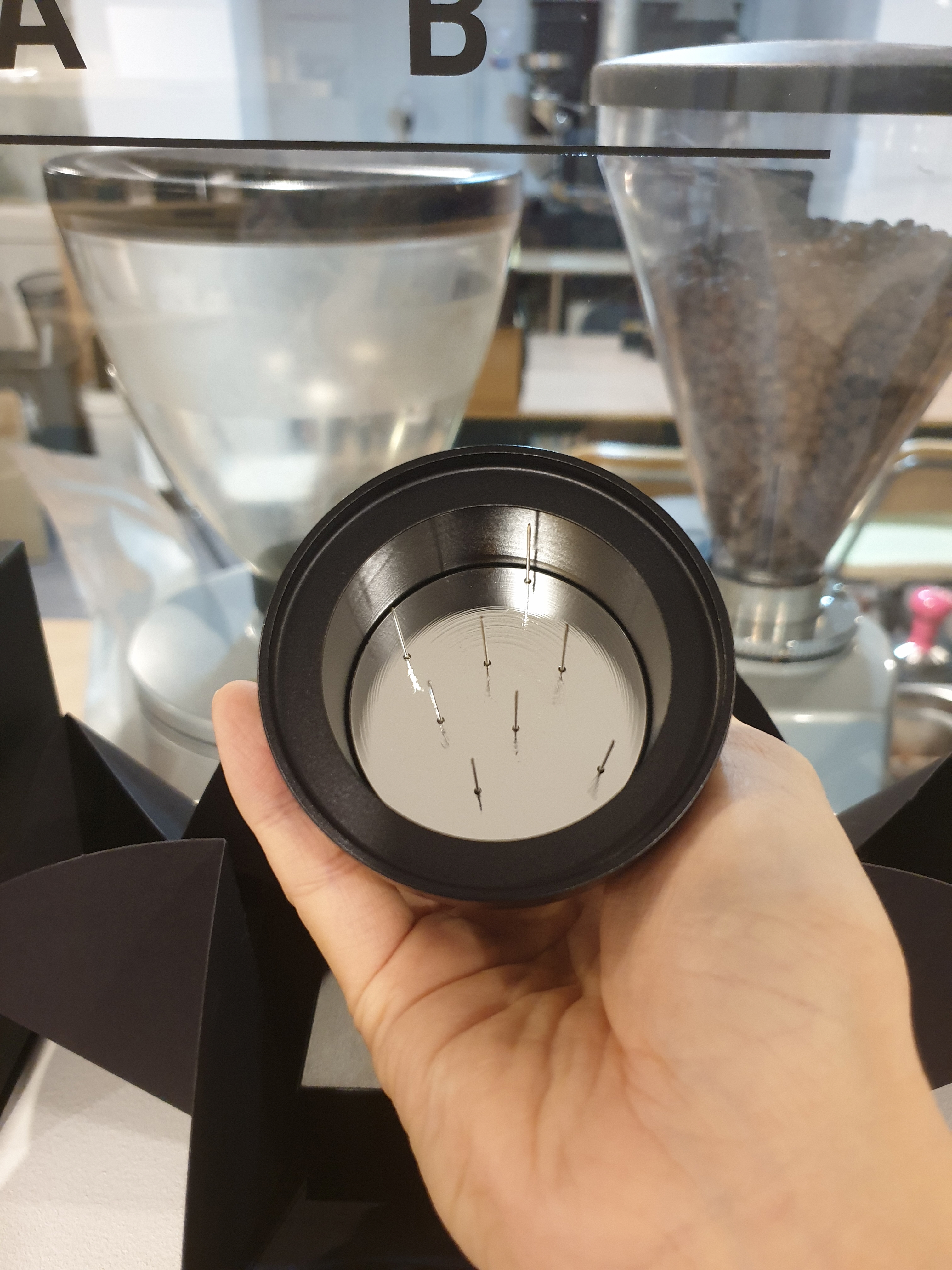 2) 바늘을 초정밀 얇은 바늘로 만들어 커피가 더욱 달라붙지 않고 정교하게 디스트리뷰션