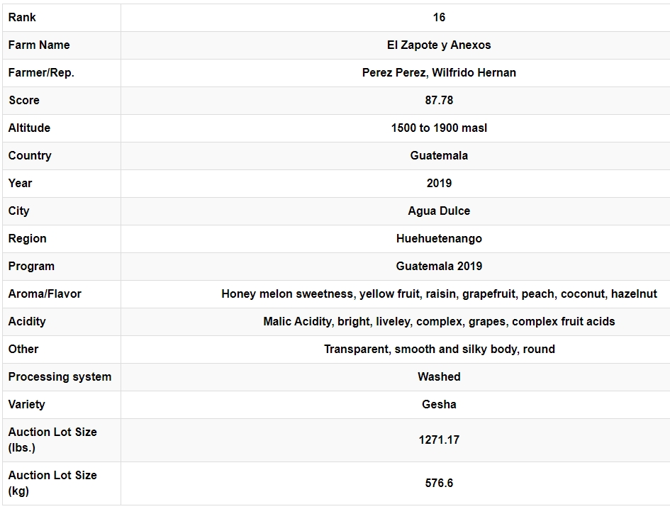 과테말라 COE에 2년 연속으로 어워드를 차지하였습니다.