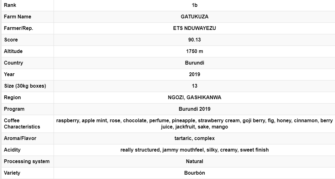 특히 브룬디에서 열린 COE대회에서는 최초로 내추럴 커피가 우승과 10위를 차지했는데 그 중 이 커피는 우승을 차지한 가투쿠자 입니다.