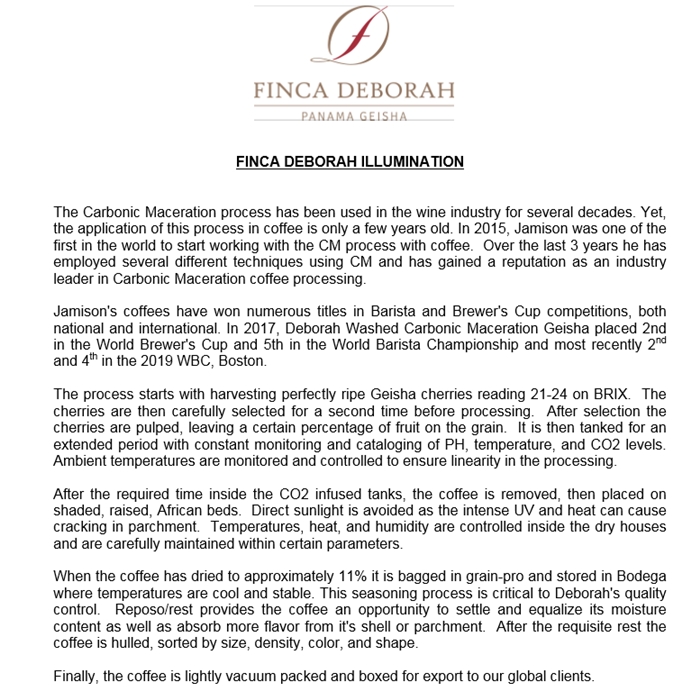 이번에 소개하는 커피는 많은 사람들이 기대하는 그 커피, 핀카데보라의 일루미네이션 입니다.