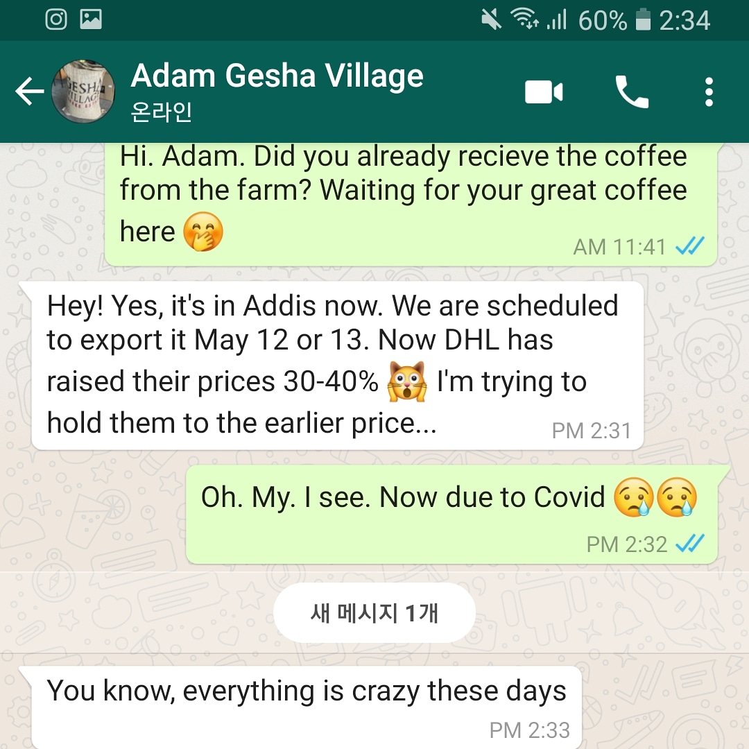 지금 에티오피아도 코로나로 난리가 나서 배송도 지연되고 있고 무엇보다 DHL가격이 3~40프로나 오를 것 같다고도 합니다 ㅠ⠀