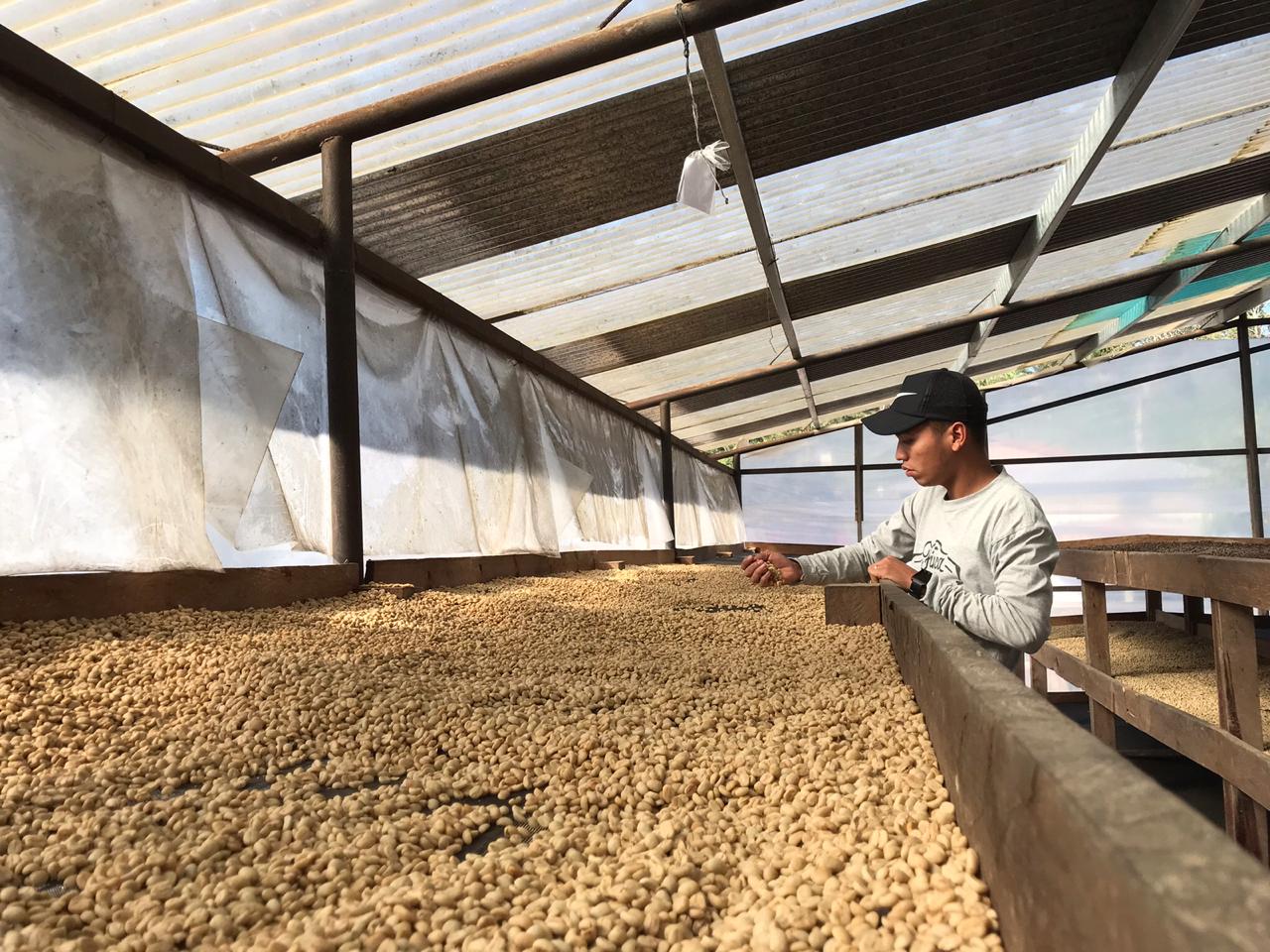 We prefer the dry fermentation method because of water conservation purposes, it also helps remove the mucilage quicker. The micro-climate in Santa Lucia can get quite cold and humid in the evenings which makes mold growth very easy. Post fermentation, the parchment is washed then transported to the raised beds inside our greenhouse.