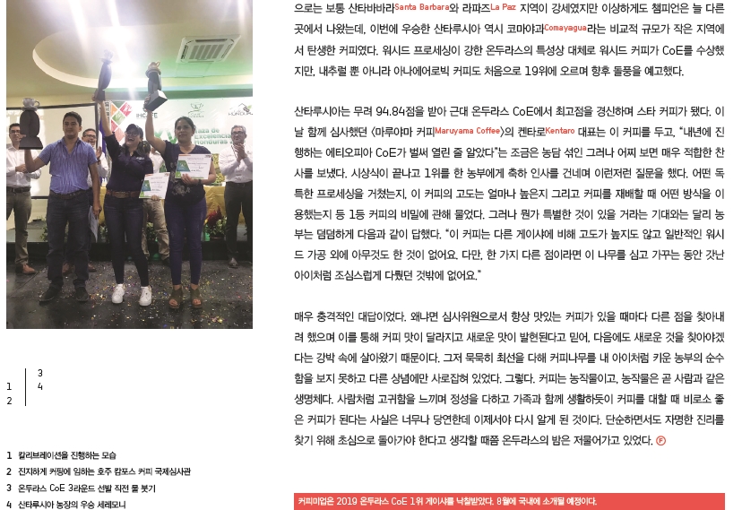 지난해 온두라스 COE에서 94.84점 이라는 압도적인 점수로 1위를 차지하고