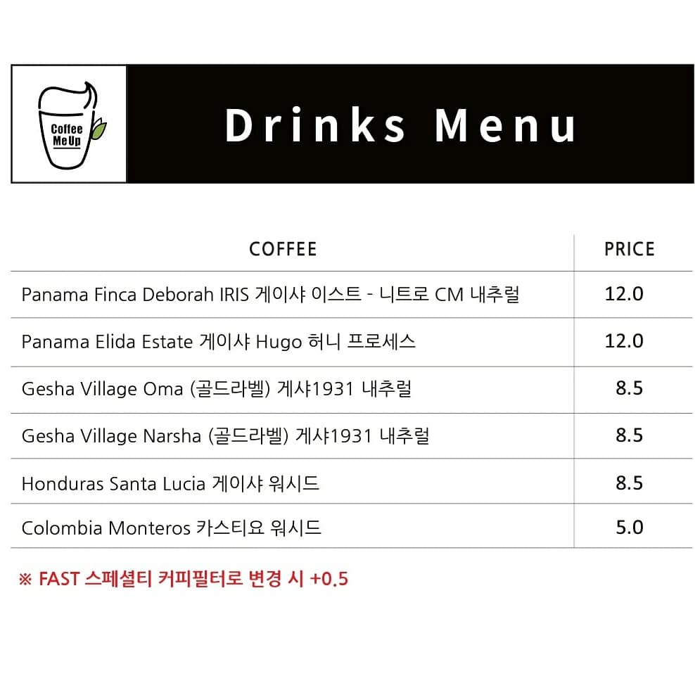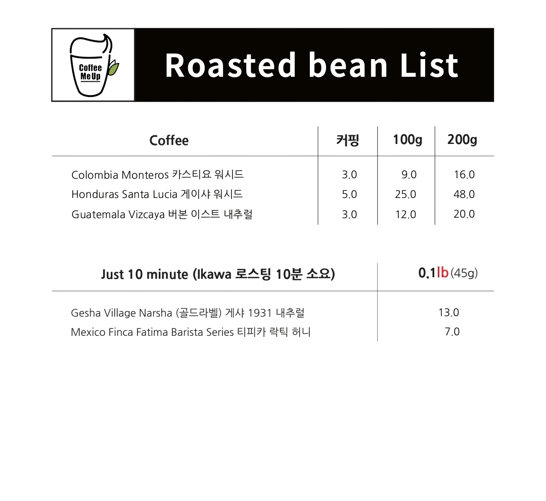 이번주에는 잠시라도 와서 커피한 잔 드실 분들을 위해 파나마 엘리다 게이샤 후고 허니를 추가했고요.