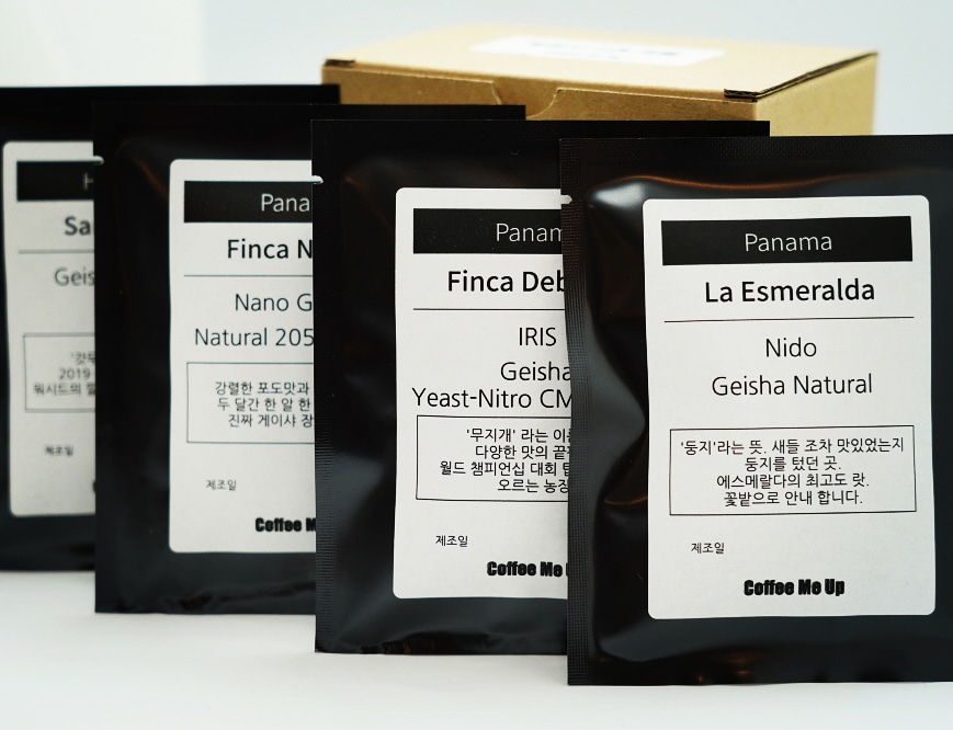 커피미업이 올해 가져온 커피 중 가장 맛있었던 4종의 게이샤를 드립백으로 제작하여 추석때 간편하게 즐기실 분을 위한 커피로 만들어봤답니다.